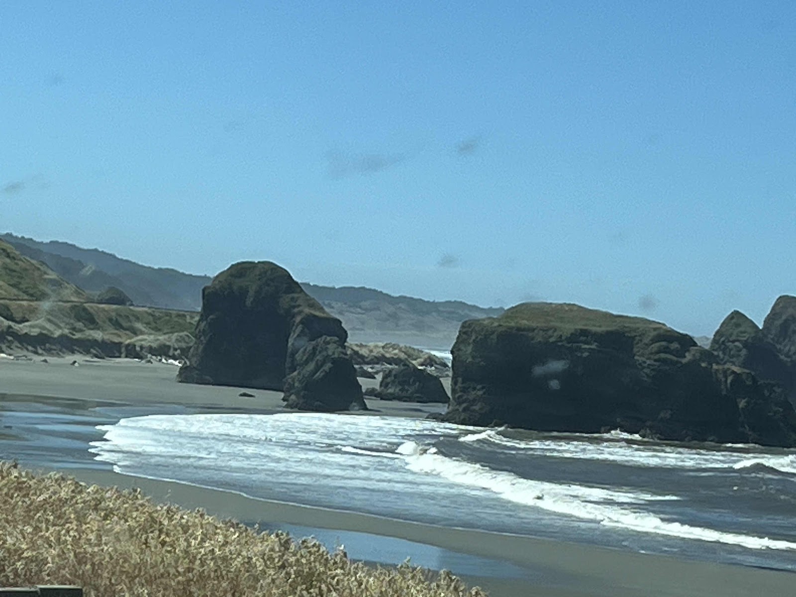 Tonight we stayed in a small county park called Big Lagoon, just north of Trinidad. If you like small parks tucked in among a forest and a lagoon as your view, this is the park for you. We think it’s a little gem. It was very windy when we arrived but we still took a walk along the lagoon. There was only one other tenter then. Now at 8 pm, there are 3 RVs and the tent.