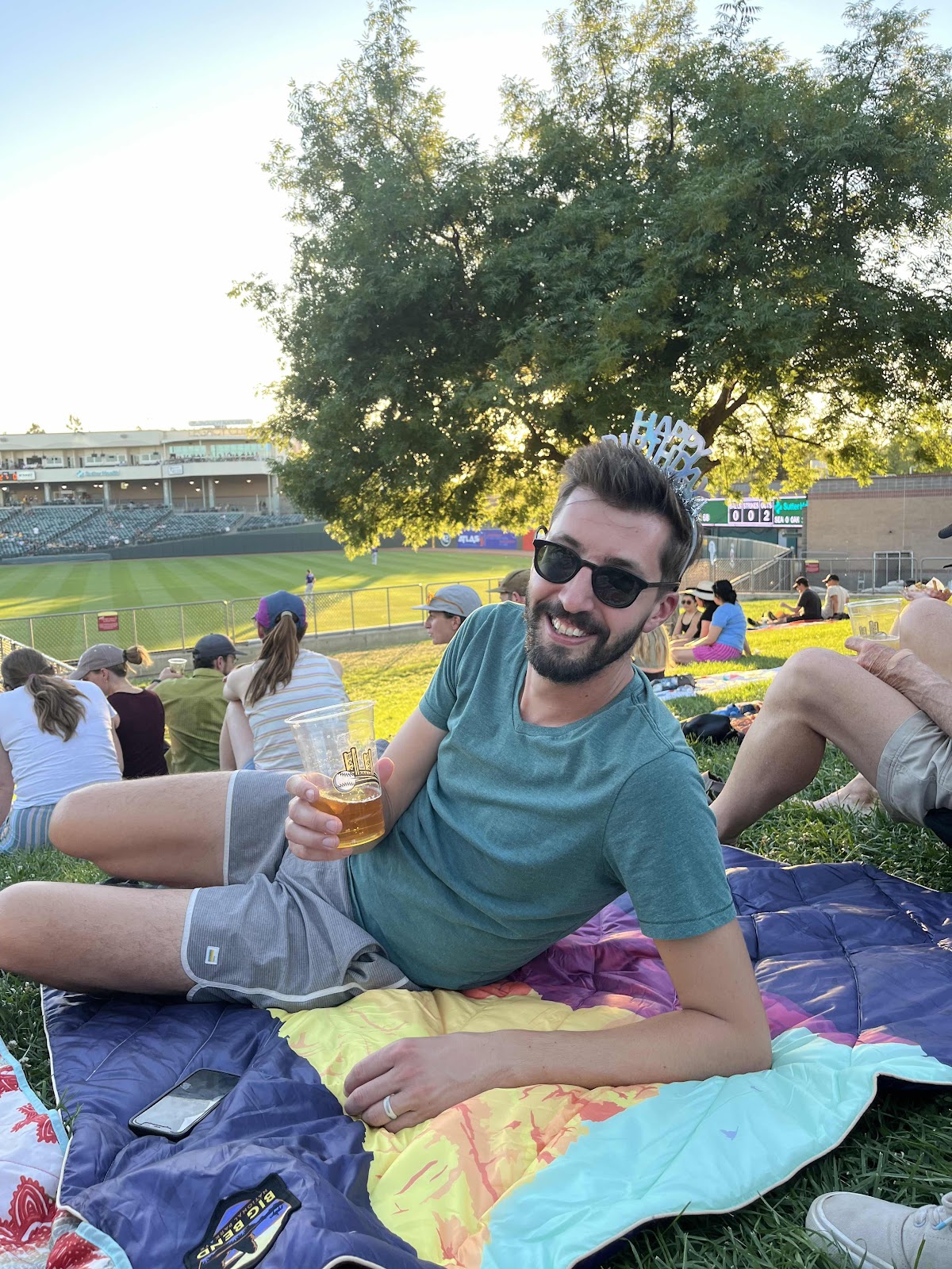 Drew and Erin invited us to a Rivercats game. We thought it would be too hot but decided to go have a beer and nachos and then leave, since Drew was still celebrating his birthday! Notice his birthday crown