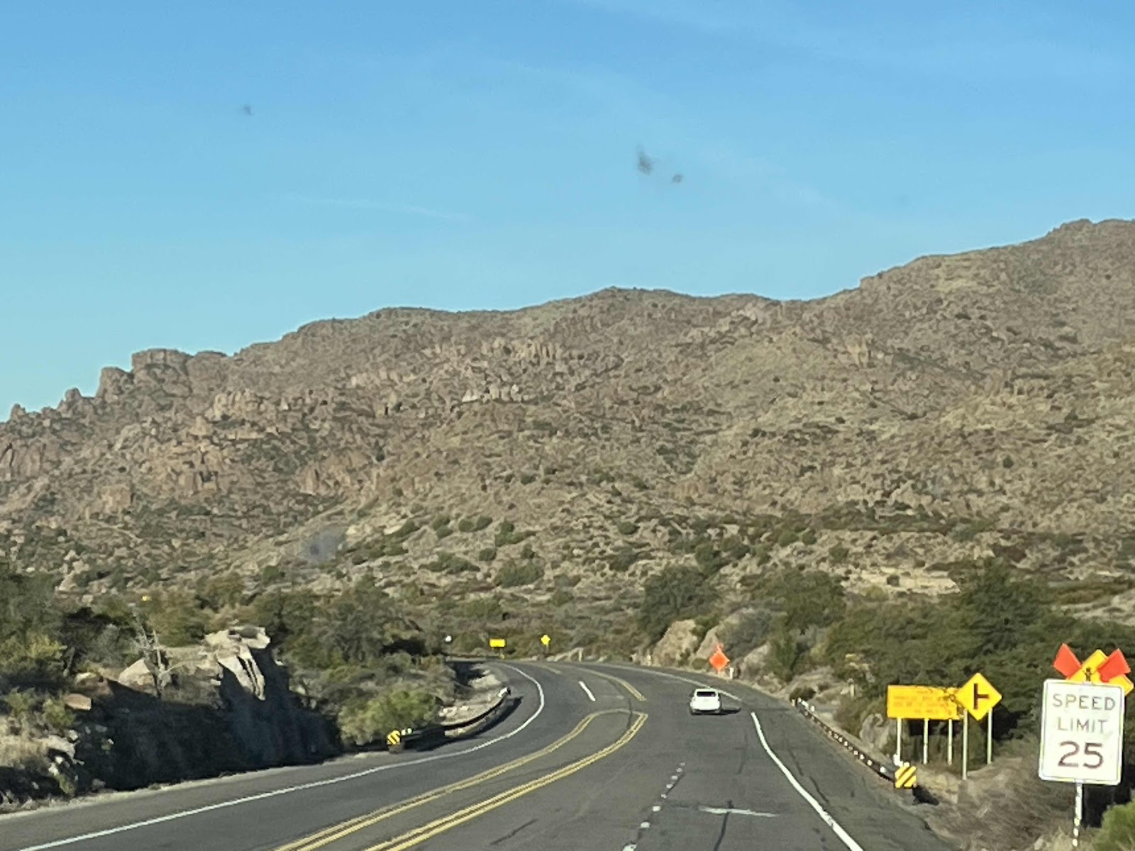 We were finally on our way to Quartzsite by 12:30 with working lights and an oil change! Woohoo!