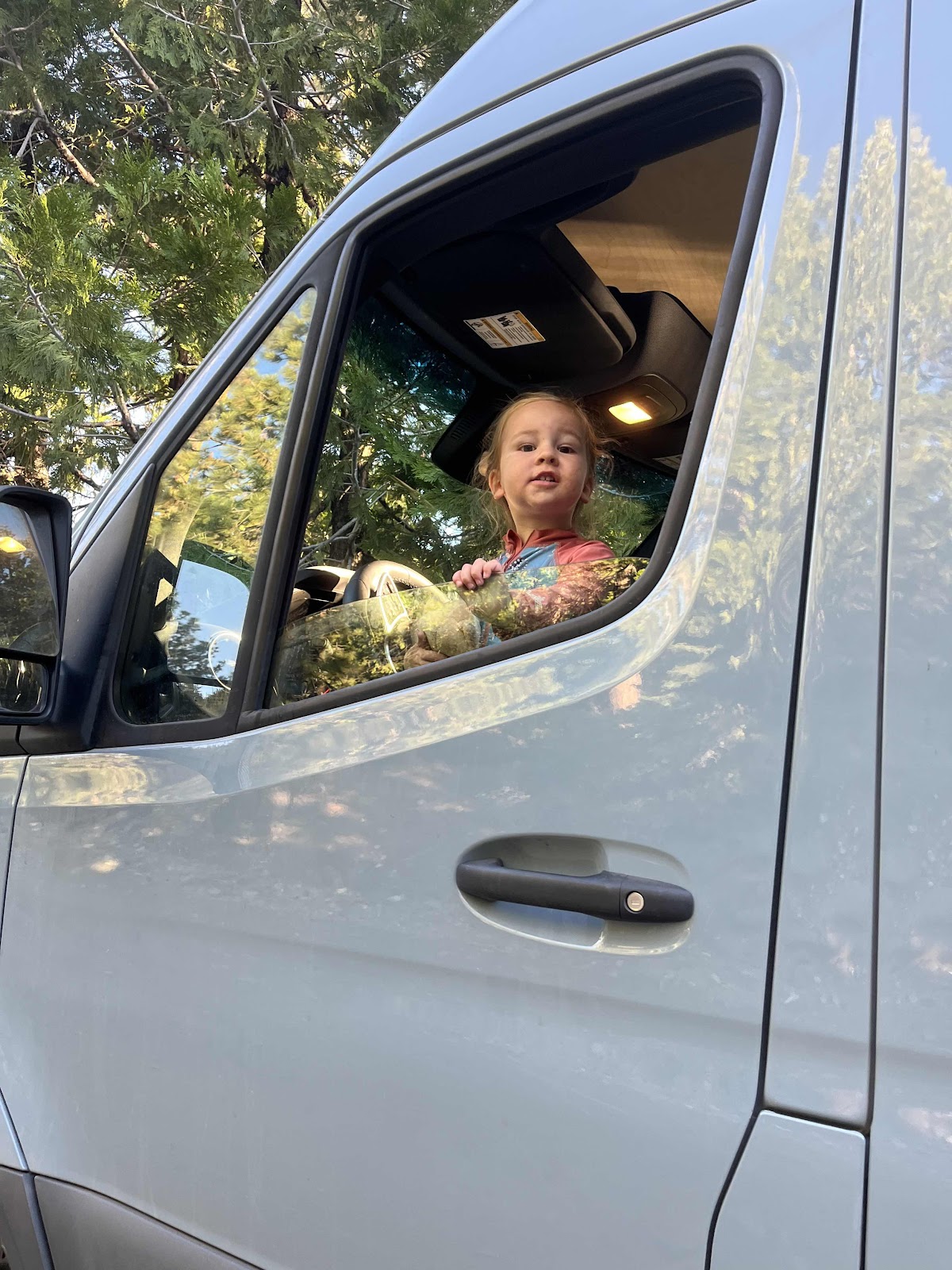 While Carl and Shannon cleaned out the van from yesterday , Arlo was “driving” the van.