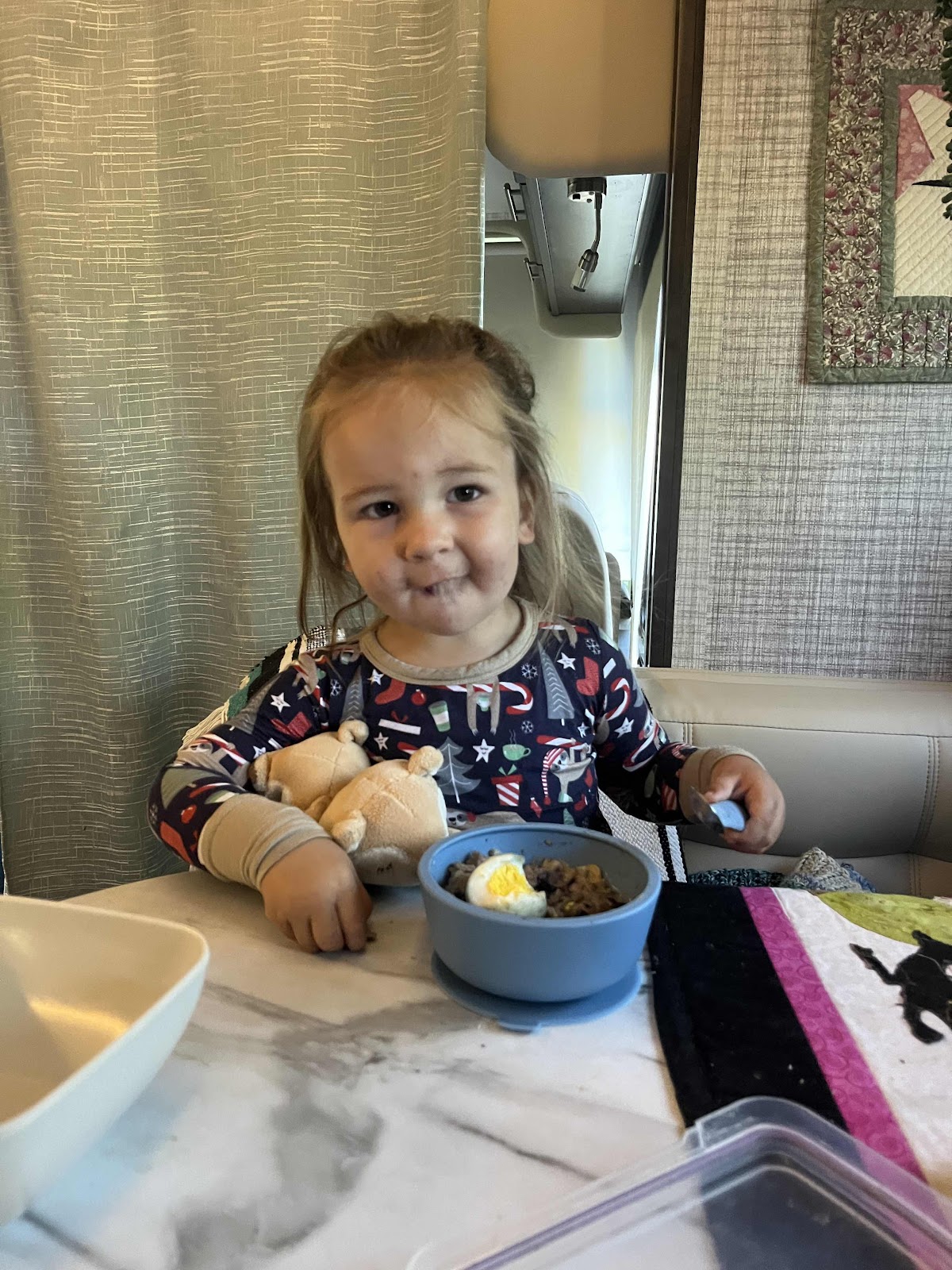 Before we left for Scott’s Flat Lake, Arlo had breakfast and a little play time in Belle.
