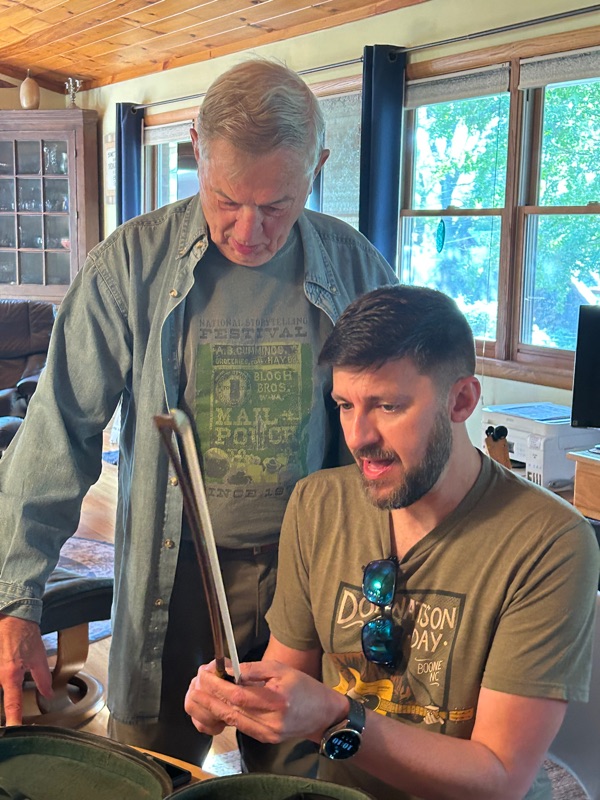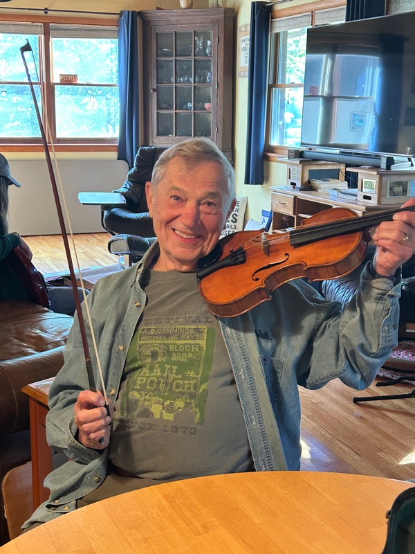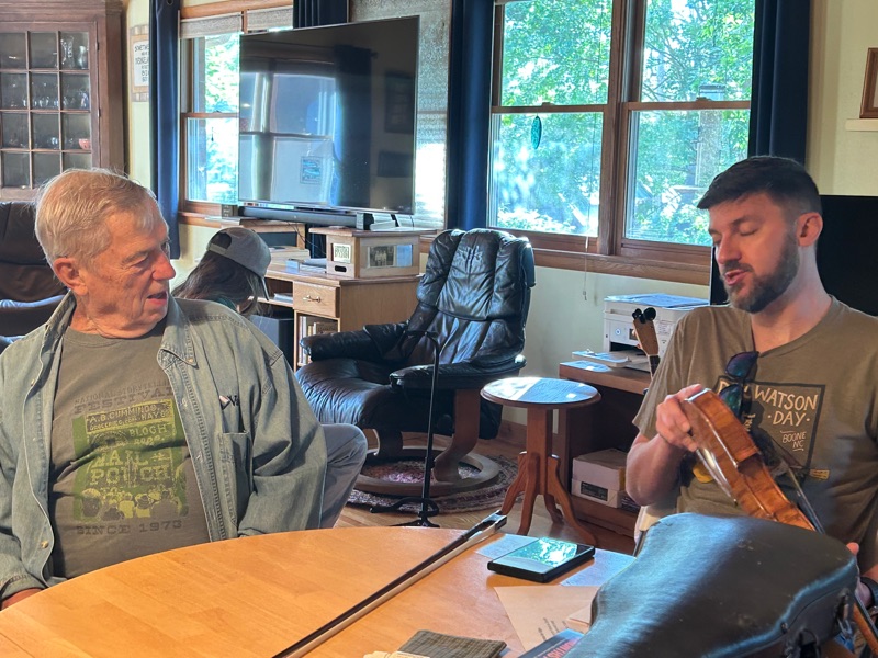 Terry and Sandy had a special visitor on Thursday. One of my favorite storyteller/musicians, Josh Goforth, brought Terry’s fiddle back to him after being repaired. This fiddle was built in 1892 and one of Terry’s relatives played it.