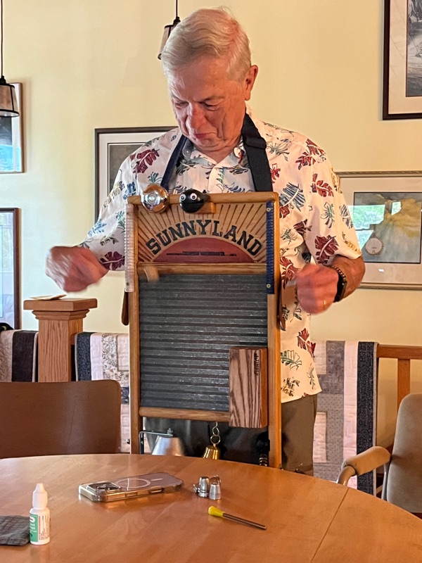 When I got back to Terry and Sandy’s, Terry was showing us his new instrument… an upgraded washboard.