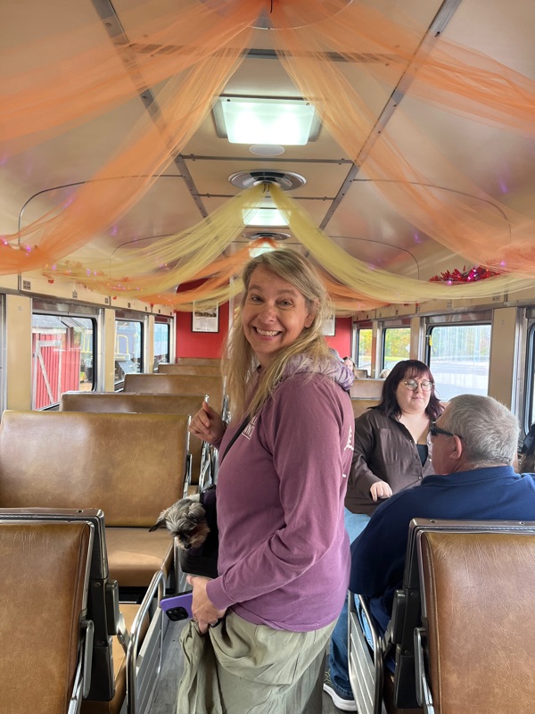 For Kristen’s 50th birthday, she wanted to take the train ride to the Curtin Apple Festival. Here we go.