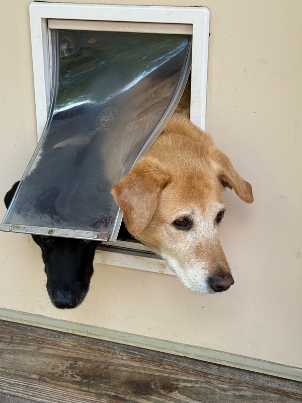 When we were getting ready to leave, Abby and Sadie said goodbye through their doggie door! Parting is such sweet sorrow.