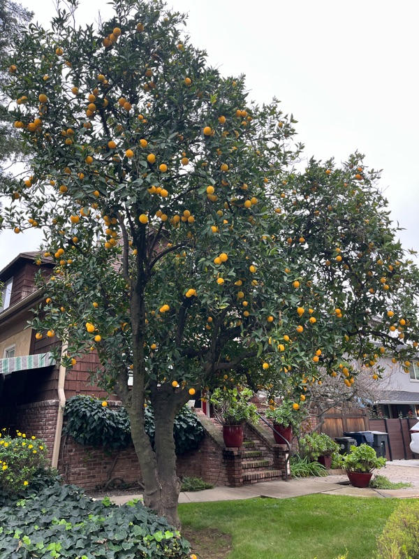 I’m always amazed at the fruit trees that are covered in fruit. Wouldn’t it be fun to go outside and pick oranges for your morning drink?