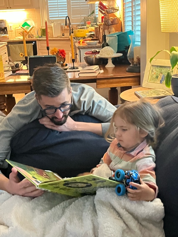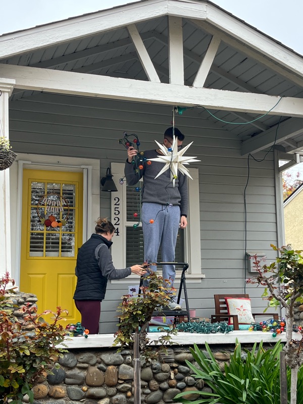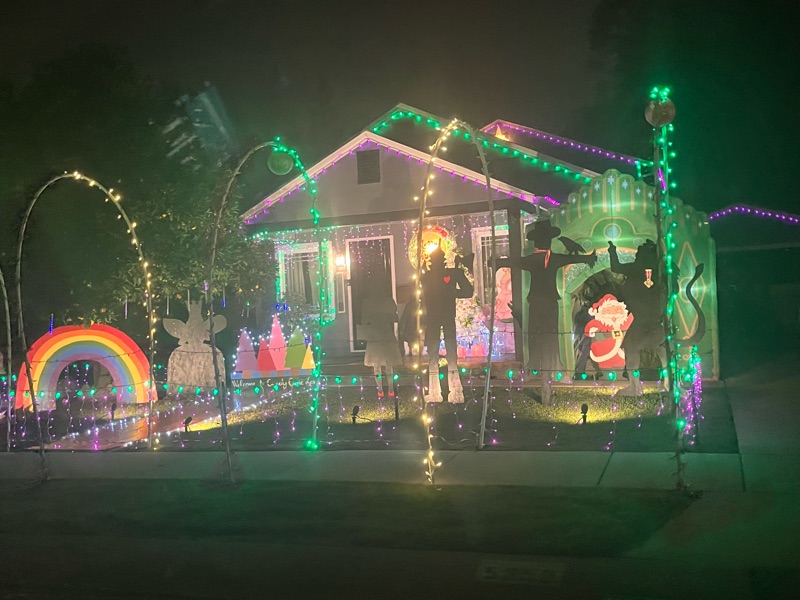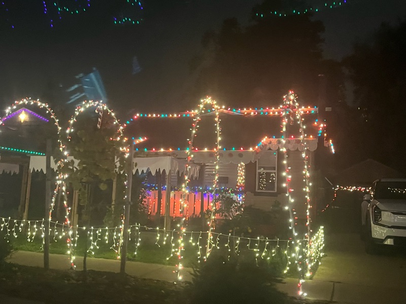 Their neighborhood loves to decorate so on the way home from the brewery we drove around to see the bright lights. Hoops are a huge item.