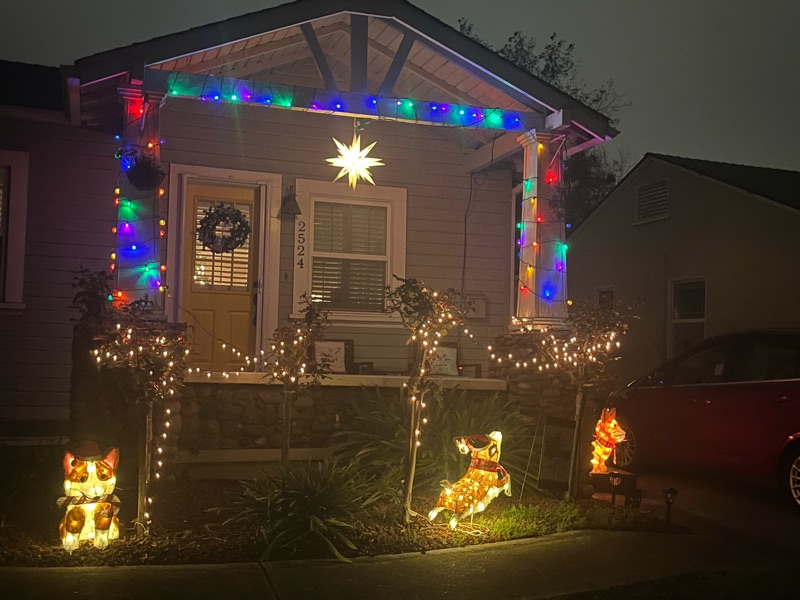 I enjoy watching Drew and Erin decorate their outside. They usually add something new. This year it was another corgi.