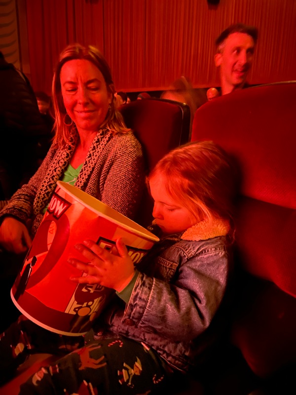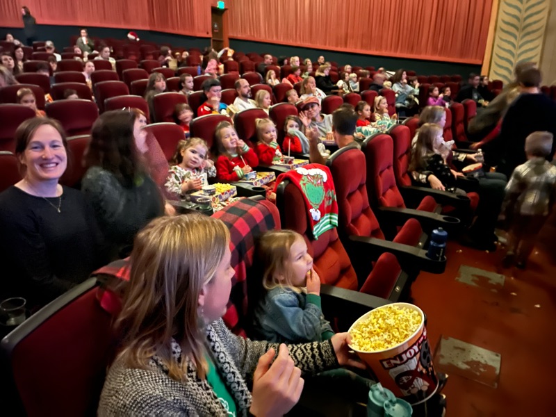 Another busy day. First we went to Grass Valley to watch How the Grinch Stole Christmas in the historic Del Oro Theater. This was Arlo's first movie in a theater. It was Maeve and Ellie's birthday party. Arlo enjoyed the popcorn and the movie. He sat through the whole movie and laughed a lot.
