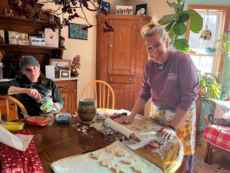 Kristen and Pixie and Winter came to help make the traditional iced sugar cookies